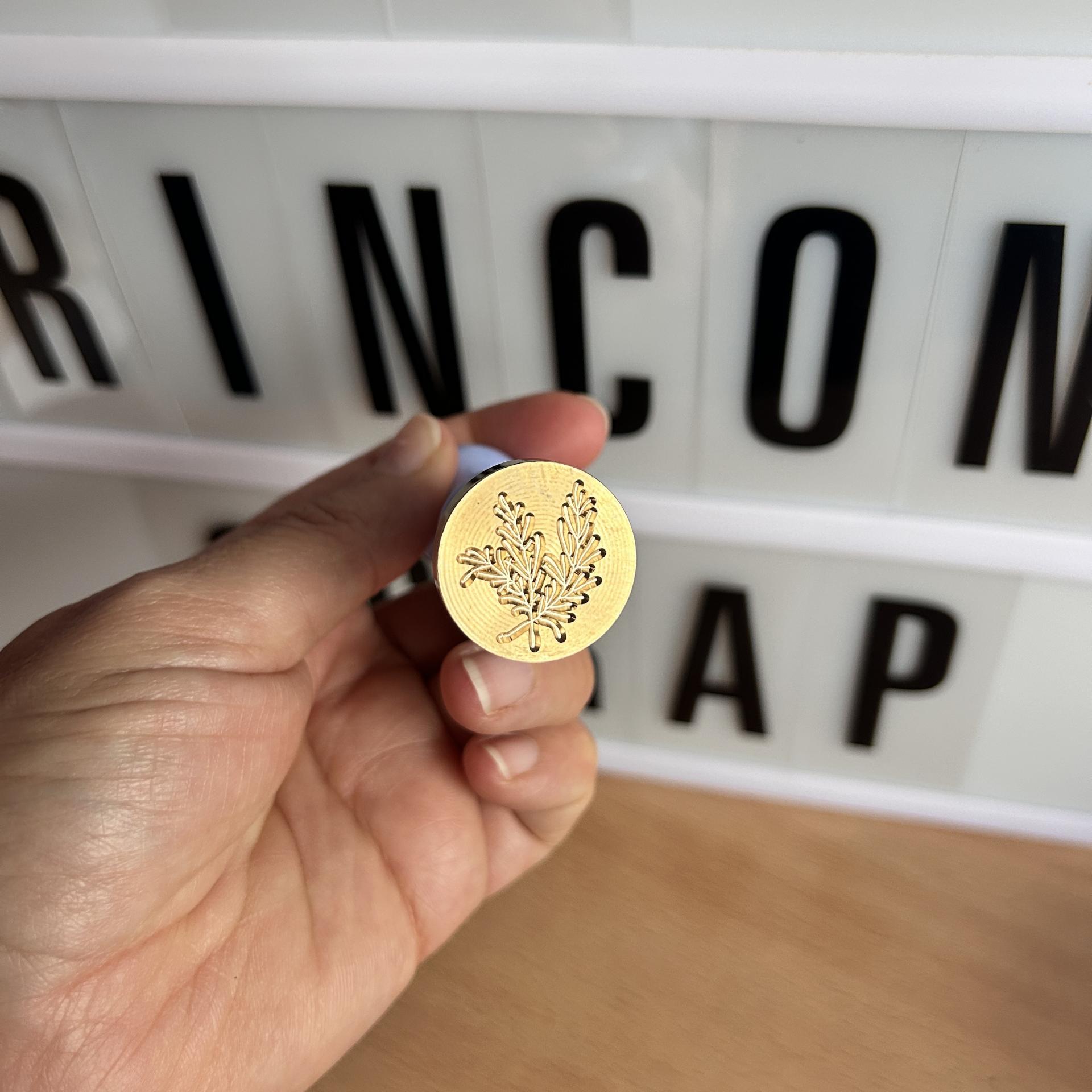 Sello metálico de latón grabado con forma de Ramitas con flor, calidad perfecto para crear sellos con perlas o barritas de lacre.