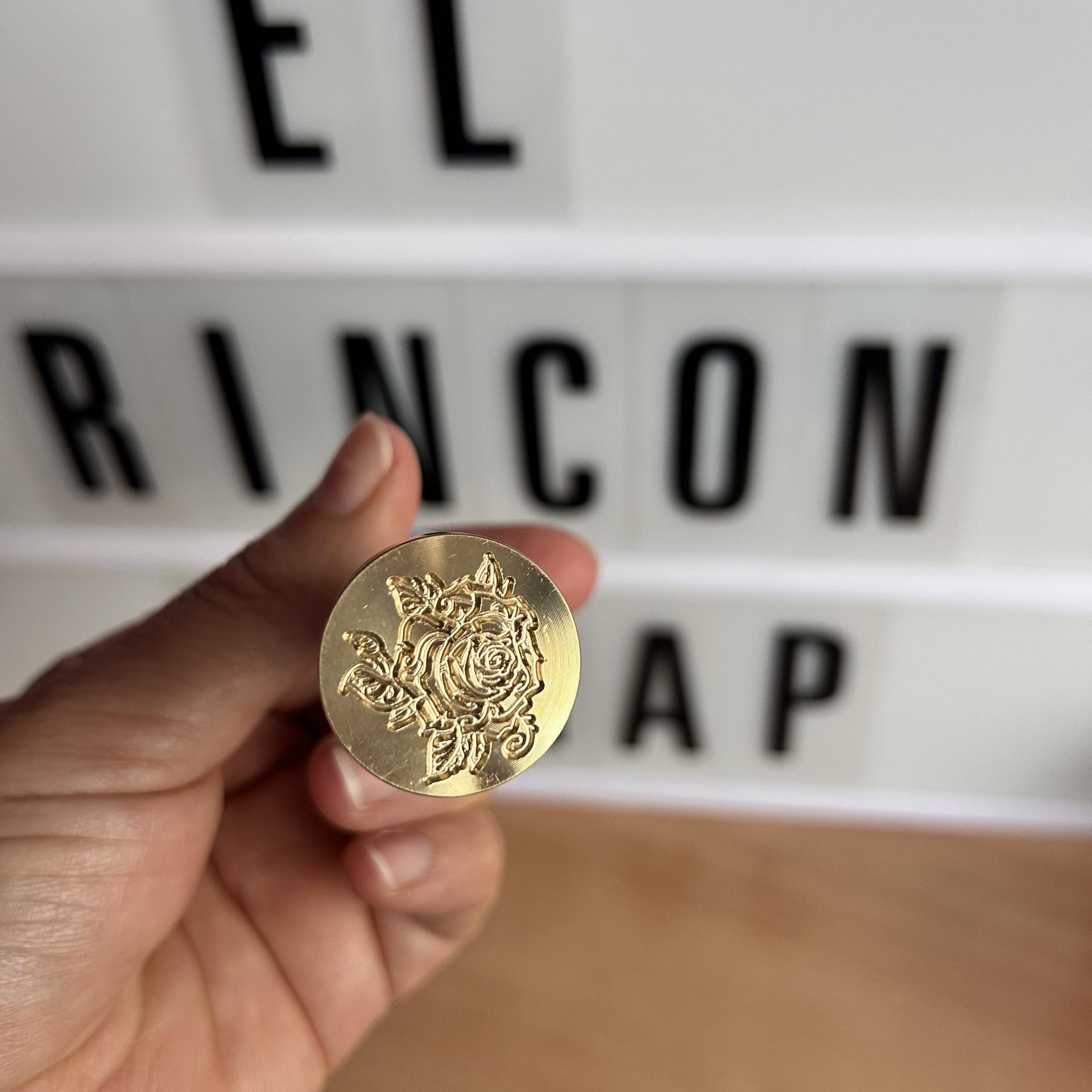 Sello metálico de latón grabado con forma de Rosa Vintage, calidad perfecto para crear sellos con perlas o barritas de lacre.