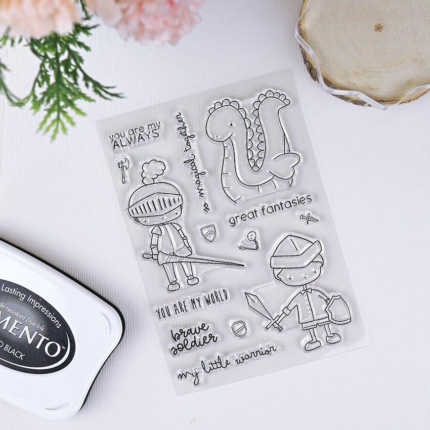 El set de sellos Little warrior pertenece a la colección A la montaña, en el que encuentras elementos para documentar tus proyectos de scrapbooking para niños.