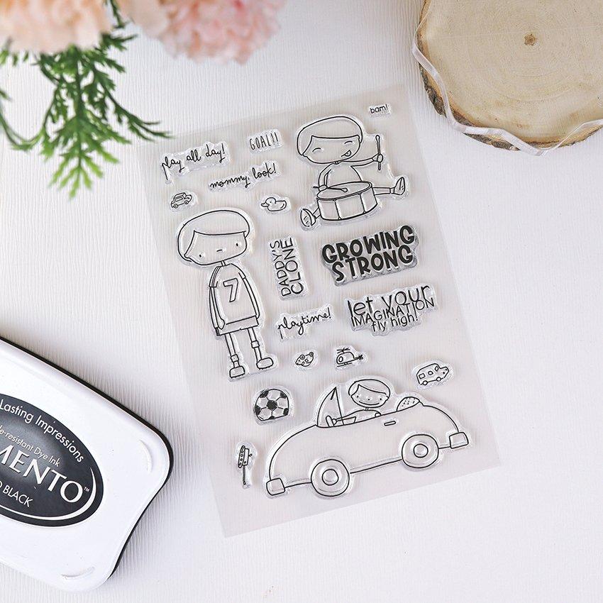 El set de sellos Growing strong pertenece a la colección A la montaña, en la que encuentras elementos para documentar tus proyectos de scrapbooking para niños.