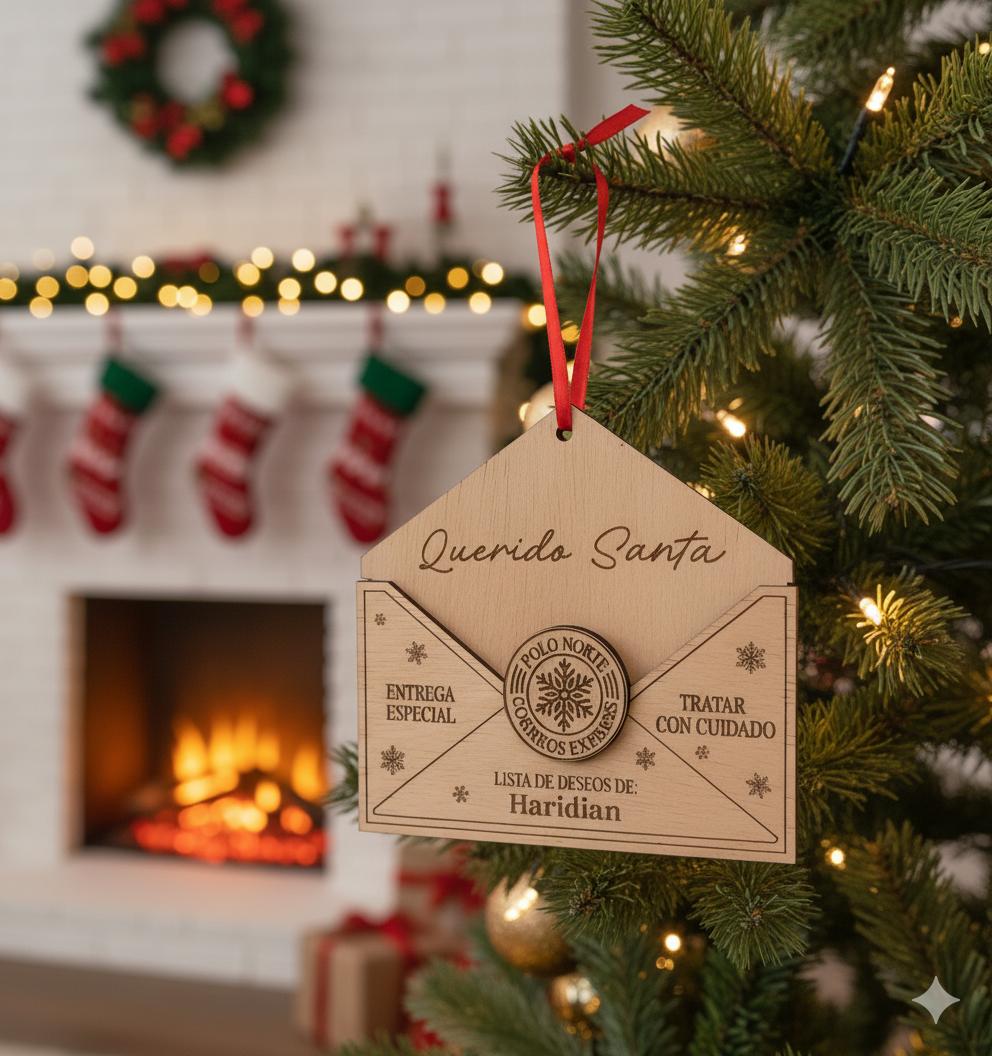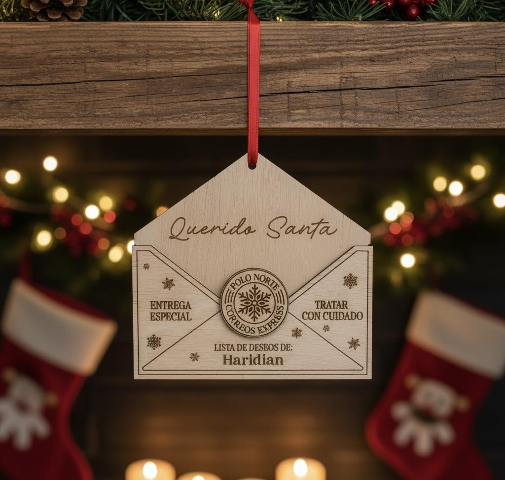 Haz que la magia de la Navidad sea aún más especial con este original sobre de madera. Diseñado para guardar la carta o lista de deseos de los más pequeños, se convierte en un recuerdo único que podrás conservar año tras año.