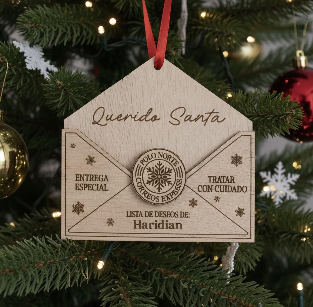 Sobre de madera personalizado para la lista de deseos de Papá Noel