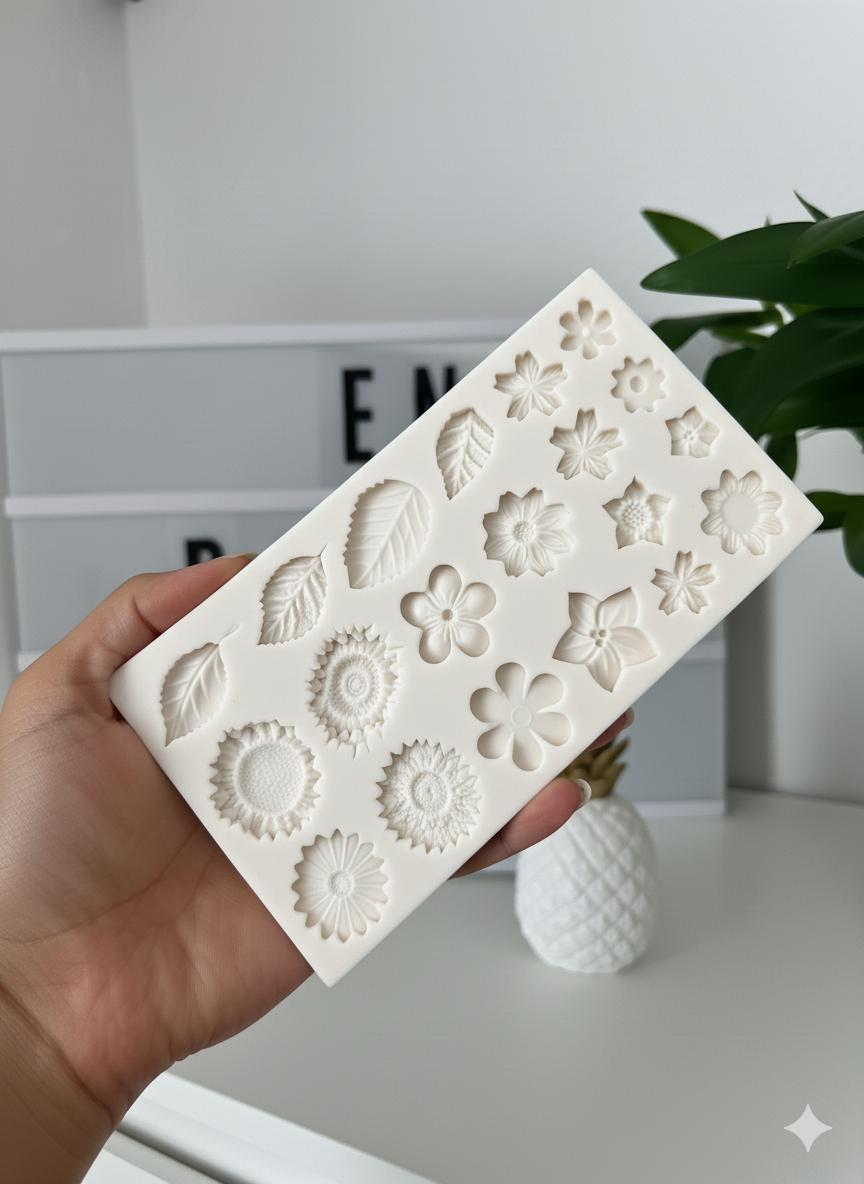 Molde Silicona Flores y Hojas