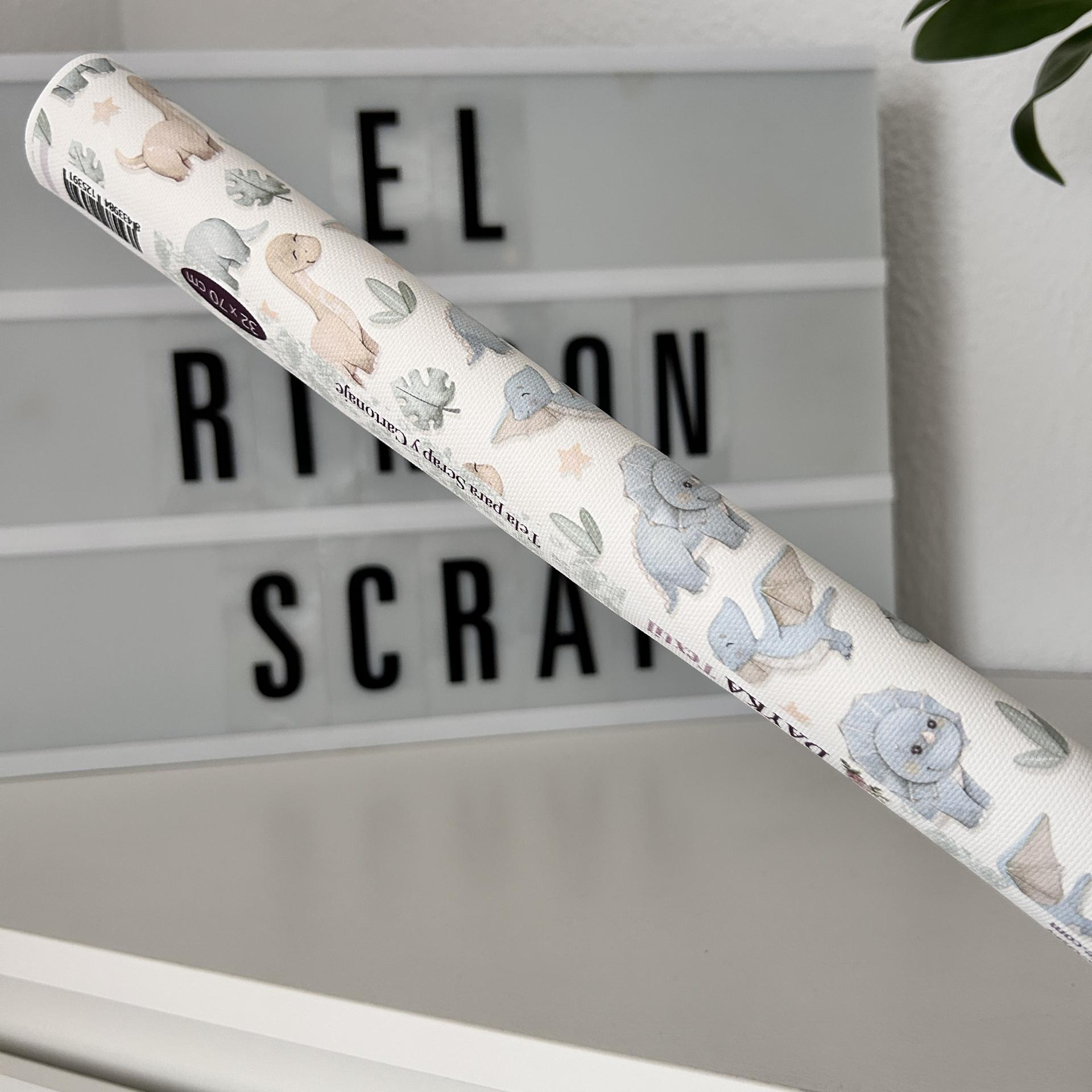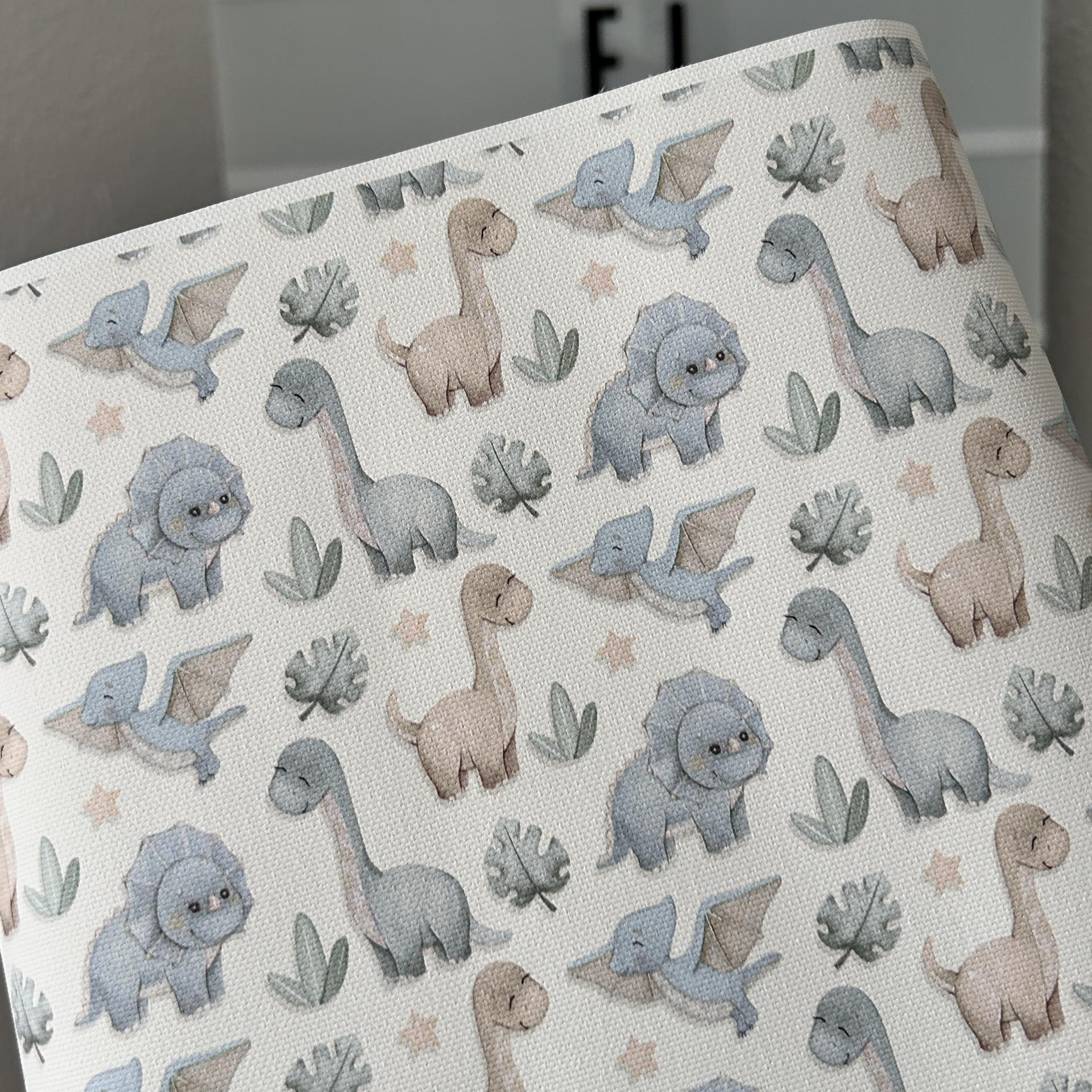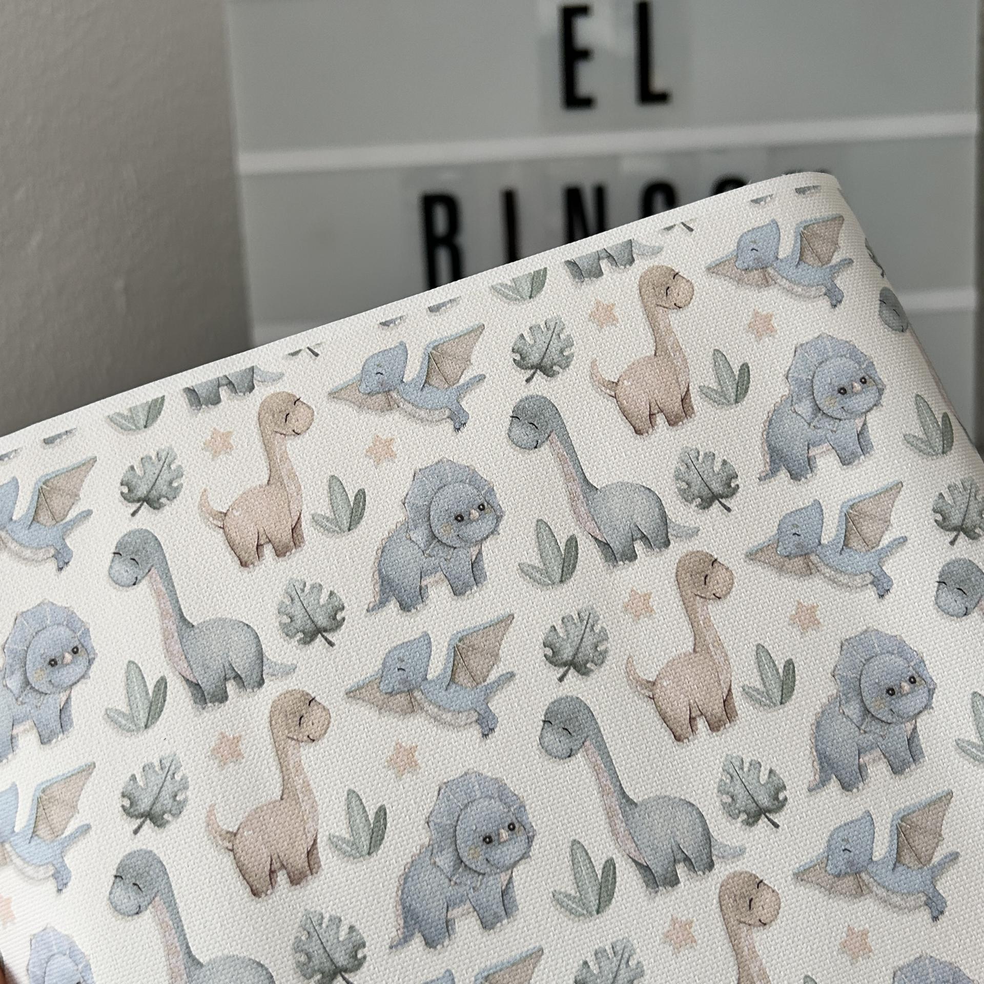 Motivo encantador de dinosaurios. Tela de lienzo estampada tipo canvas muy resistente. Resulta ideal para hacer las tapas de álbumes, coser o cualquier manualidad o proyecto DIY que quieras hacer.Puedes pegarla en cartón, madera y un sin fin de materiales...