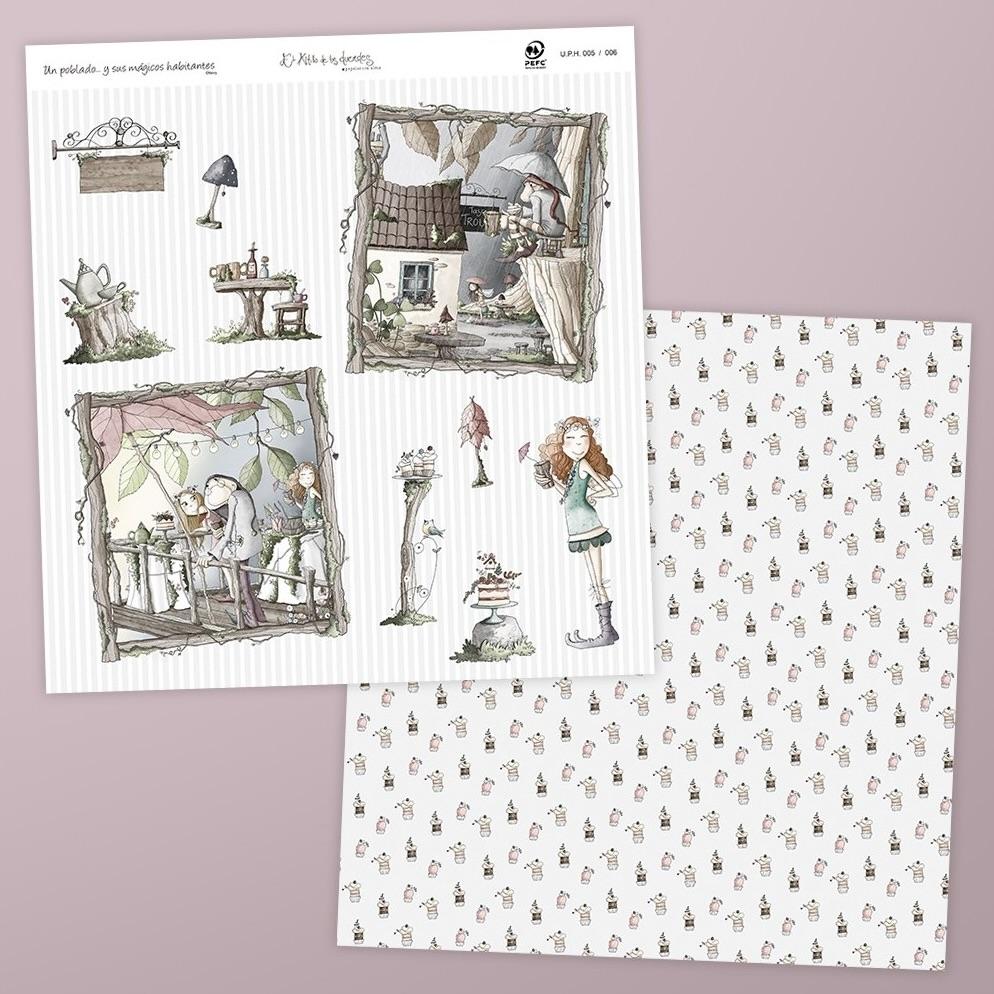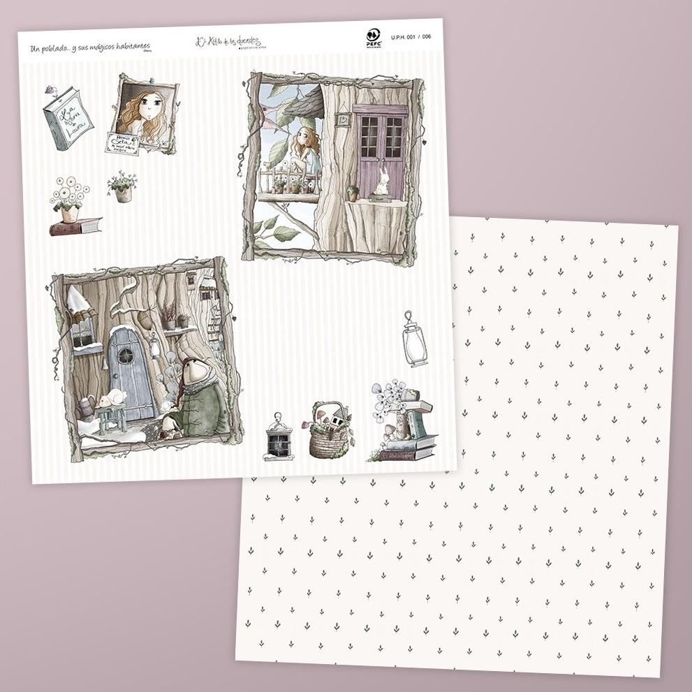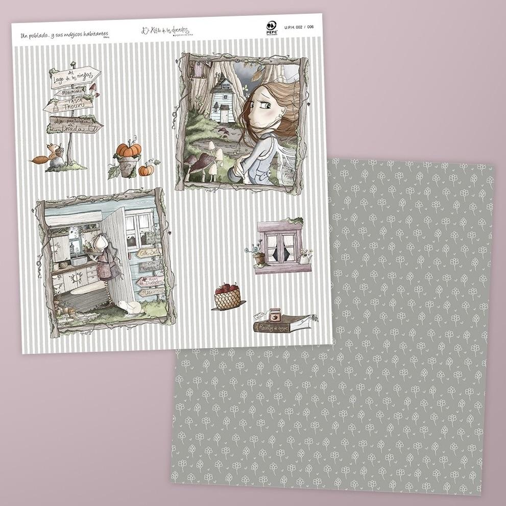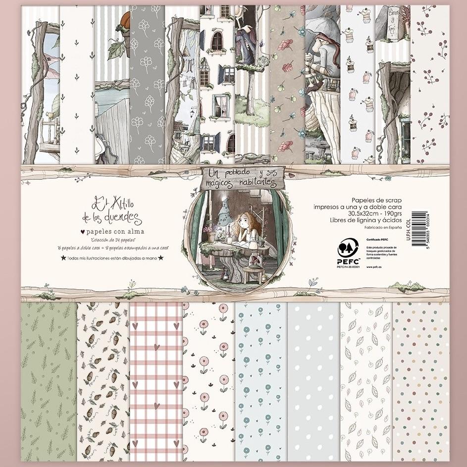 Este set incluye 14 papeles cuidadosamente ilustrados, combinando 6 papeles a doble cara y 8 papeles a una cara, con estampados únicos llenos de detalles: casitas escondidas, duendecillos, naturaleza encantada y escenas que invitan a soñar.