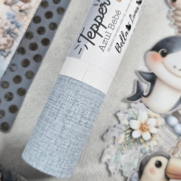 El rollito Tepper Azul Bebé de la colección Be My Baby es perfecto para aportar dulzura y delicadeza a tus proyectos de scrapbooking y manualidades creativas. Su suave tono azul transmite calma y ternura, convirtiéndolo en una opción ideal para creaciones infantiles y recuerdos de bebé.
