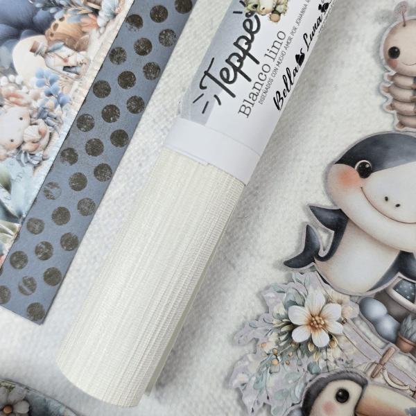 El rollito Tepper Blanco Lino de la colección Be My Baby es un básico imprescindible para tus proyectos de scrapbooking y manualidades creativas. Su tono blanco roto, con efecto lino, aporta luminosidad, elegancia y un acabado delicado que encaja a la perfección en creaciones de estilo limpio y atemporal.