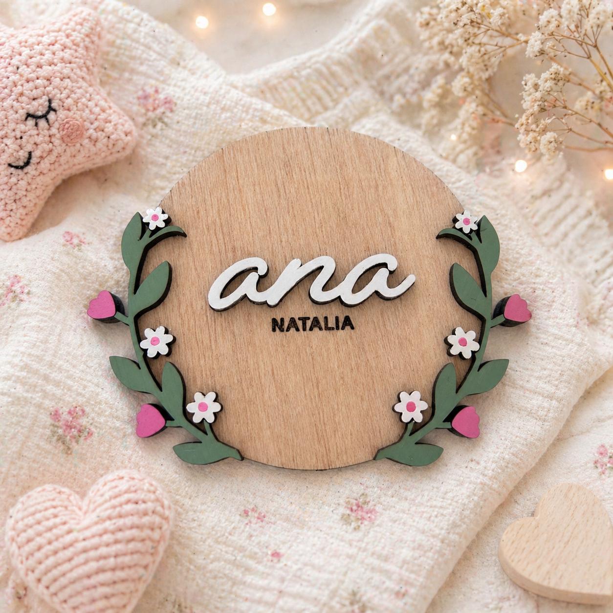 - Placa identificativa de madera personalizada con nombre, ideal para fotos y recuerdo especial